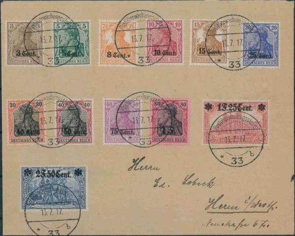 FRANCE - Guerre Yv. 26-37 O 'Poste d'Etapes', la série de 12 timbres sur lettre
