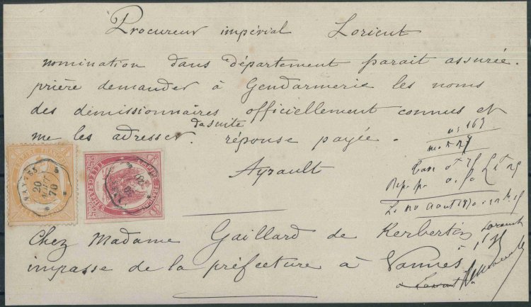 FRANCE - Timbre-Télégraphe Yv. nos. 1 et 7 sur document, rare