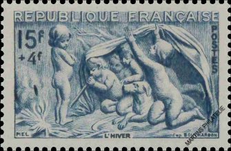 Bas relief ' L'Hiver' - 15 + 4 Fr. bleu, varieté "à la hache"
