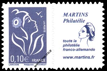 Marianne de Lamouche : 0.10 € violet-rouge, timbre autocollant, avec couche de vernis et signature 'phil@poste' tenant à vignette personnalisée (photo-vignette non-contractuelle)