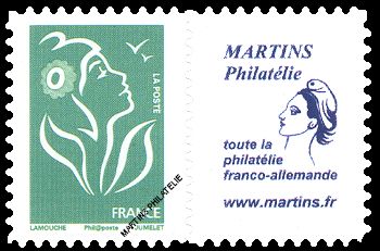 Marianne de Lamouche : sans valeur indiquée (validité permanente), vert, timbre autocollant, avec couche de vernis et signature 'phil@poste' tenant à vignette personnalisée (photo-vignette non-contractuelle)