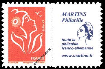 Marianne de Lamouche : sans valeur indiquée (validité permanente), rouge, timbre autocollant, avec couche de vernis et signature 'phil@poste' tenant à vignette personnalisée (photo-vignette non-contractuelle)