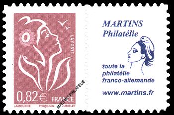 Marianne de Lamouche : 0.82 € brun-rose, timbre autocollant, avec couche de vernis et signature 'phil@poste' tenant à vignette personnalisée (photo-vignette non-contractuelle)