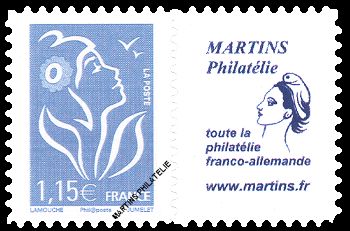 Marianne de Lamouche : 1.15 € bleu clair, timbre autocollant avec couche de vernis, signature 'phil@poste' tenant à vignette personnalisée (photo-vignette non-contractuelle)