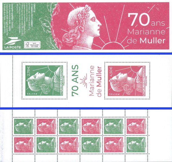 2025 : Marianne de Mullere - Complete set of 14 stamps in booklet, complete and unfolded, as issued