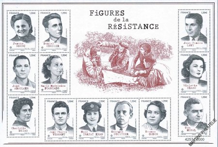 2025 : Figures de la Résistance - Feuillet numéroté et bord d'oré avec 12 timbres